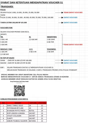 Berikut Perincian Hadiah Konter Smartone Cell dengan Syarat dan Ketentuan sebagai berikut: