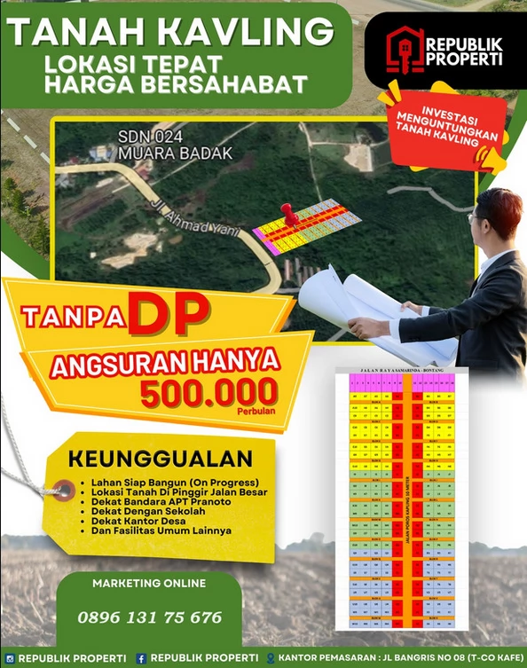 Cari tanah dijual di Samarinda? Cek di sini untuk dapatkan informasi iklan jual tanah di Samarinda✔️Tanah kavling ✔️Sertifikat lengkap ✔️Lokasi strategis.